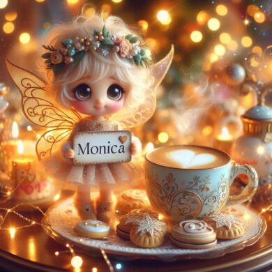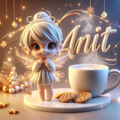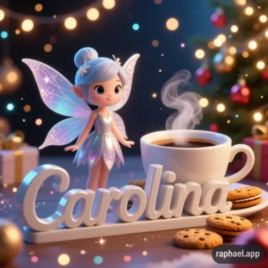 Descarga esta imagen hermosa de una hada encantadora con un letrero que dice “Ale”, en medio de una celebración de Año Nuevo llena de luces festivas y colores cálidos. La escena se completa con una gran taza de café humeante y deliciosas galletas, creando un ambiente acogedor y alegre. Esta imagen es especial por su toque mágico y festivo, ideal para fondos de pantalla y felicitaciones personalizadas. ¡Descárgala ahora y compártela con tus seres queridos!