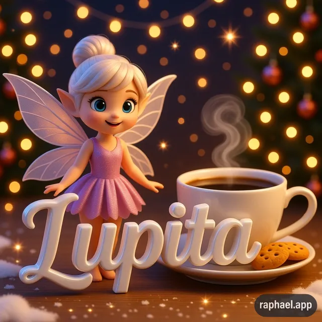 Descarga esta imagen hermosa de una pequeña y adorable hada junto al nombre 3D “Lupita”, esculpido con detalles modernos y brillantes. El ambiente festivo de Año Nuevo se refleja en luces suaves, destellos mágicos y colores cálidos. Una gran taza de café y galletas añaden un toque acogedor, creando una escena mágica y única en alta calidad. Perfecta para fondos, tarjetas o compartir momentos especiales. #imagenesgratis #descargar #fotos #wallpaper ¡Descárgala y compártela con quienes más quieres!