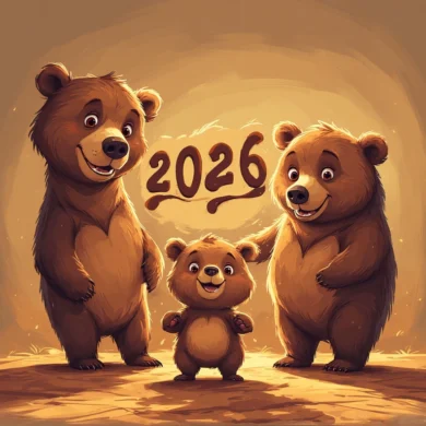 Descargar Imagen Gratis de Oso Familiar para Año Nuevo